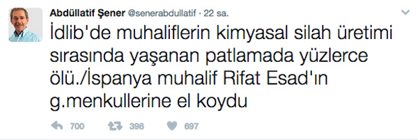 Abdüllatif Şener'den rezil kimyasal saldırı paylaşımı