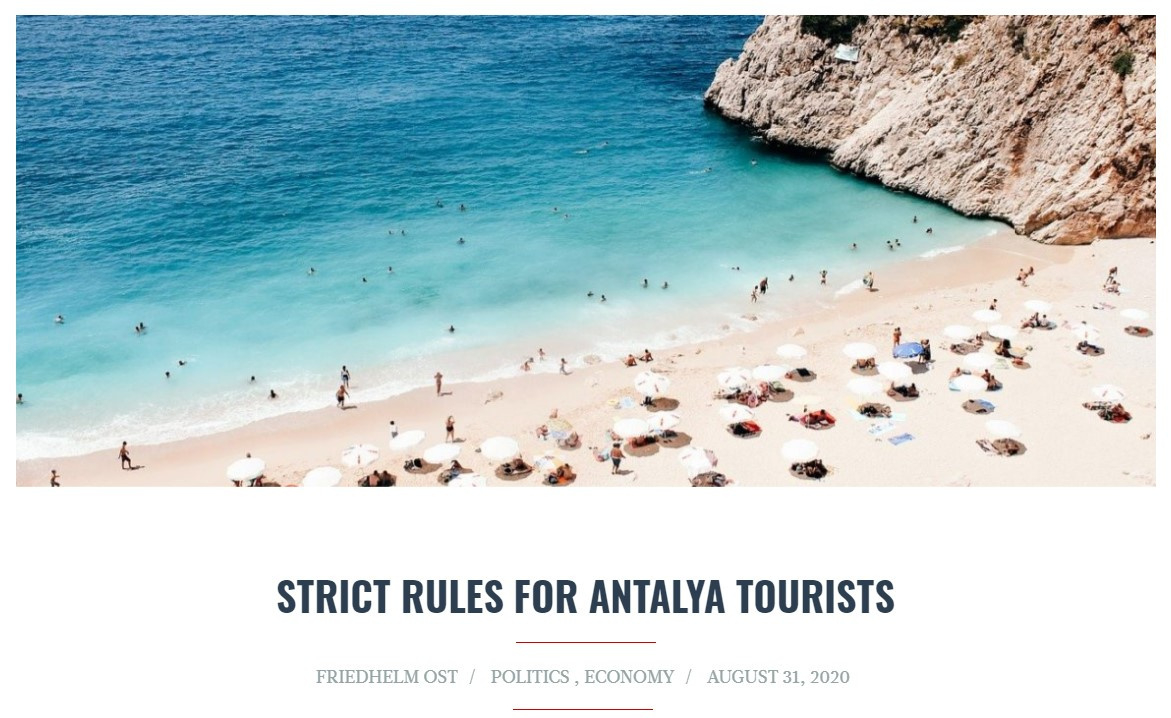 Blog Der Republik'te yayınlanan "Antalya turistleri için sıkı önlemler" adlı yazısında Ost, Kültür ve Turizm Bakanı Mehmet Nuri Ersoy'un pandemi döneminde harika işler çıkardığına yer verdi.
