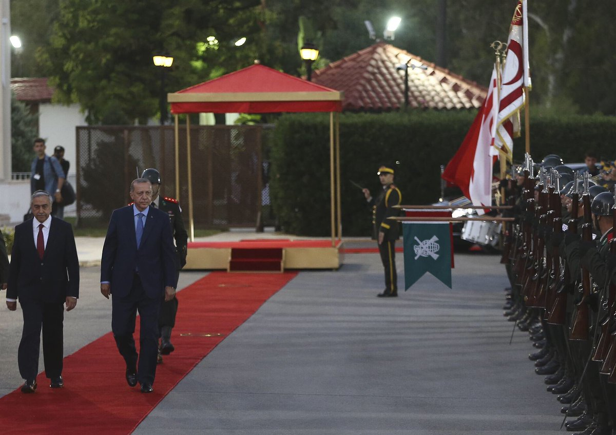 Cumhurbaşkanlığı Sarayı'nda gerçekleşen resmi karşılamada Erdoğan ve Akıncı'nın tören alanındaki yerlerini almalarının ardından İstiklal Marşı okundu. İstiklal Marşı okunurken Başkan Erdoğan onuruna 21 pare top atışı gerçekleştirildi.
