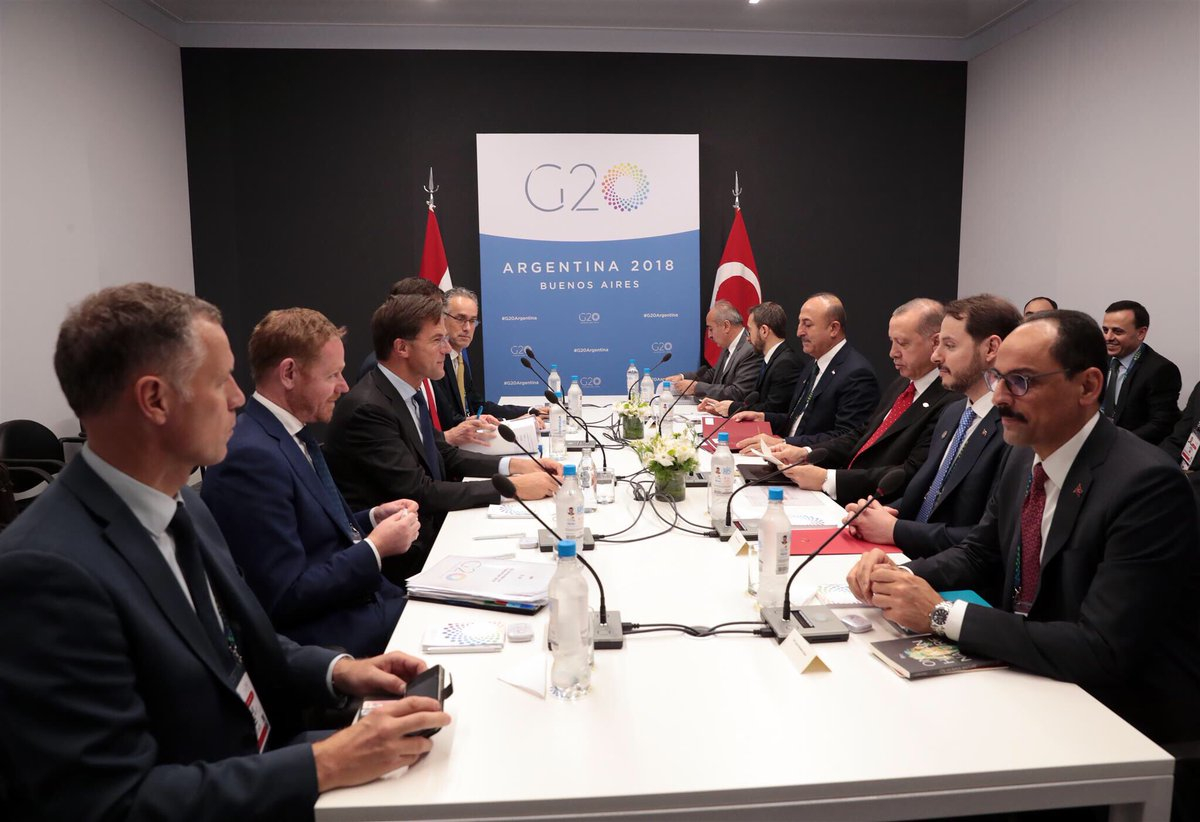 Cumhurbaşkanı Erdoğan, G20 Liderler Zirvesi çerçevesinde bulunduğu Arjantin'de, Hollanda Başbakanı Rutte'yi kabul etti.