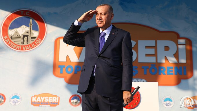 Cumhurbaşkanı Erdoğan Kayseri'de Toplu Açılış Töreninde konuşma yaptı. Erdoğan alanda kurdelenin kesilmesiyle tüm halkı asker selamı ile selamlayarak övgü topladı.