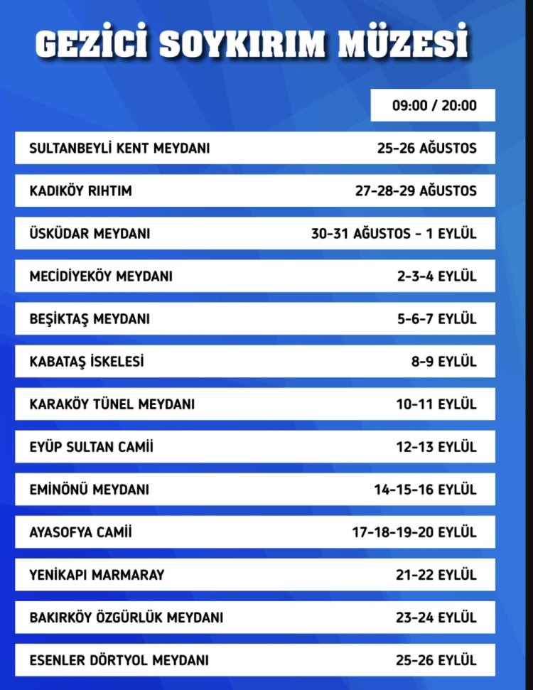 Gezici Soykırım Müzesi'nin İstanbul programı şöyle: