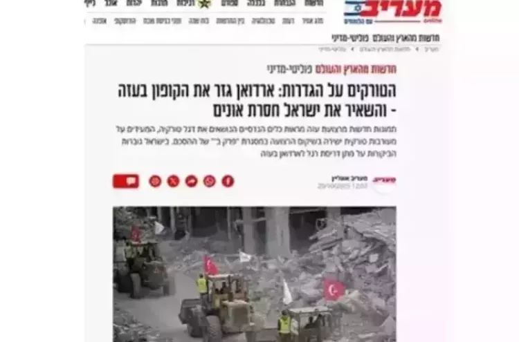 İsrail basını, Gazze'de Türk bayrağı taşıyan iş makinelerinin görüntülerini yayınlayarak Türkiye'nin bölgede artan etkisine dikkat çekti. Haberde, “Erdoğan'ın ordusu zaten Gazze'de” ifadelerine yer verilerek, Ankara'nın Filistin'deki rolü vurgulandı.