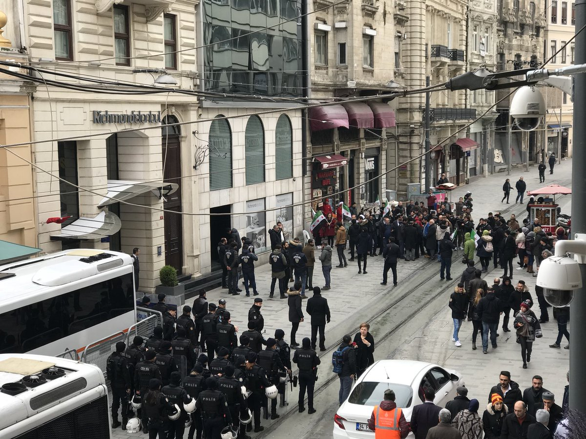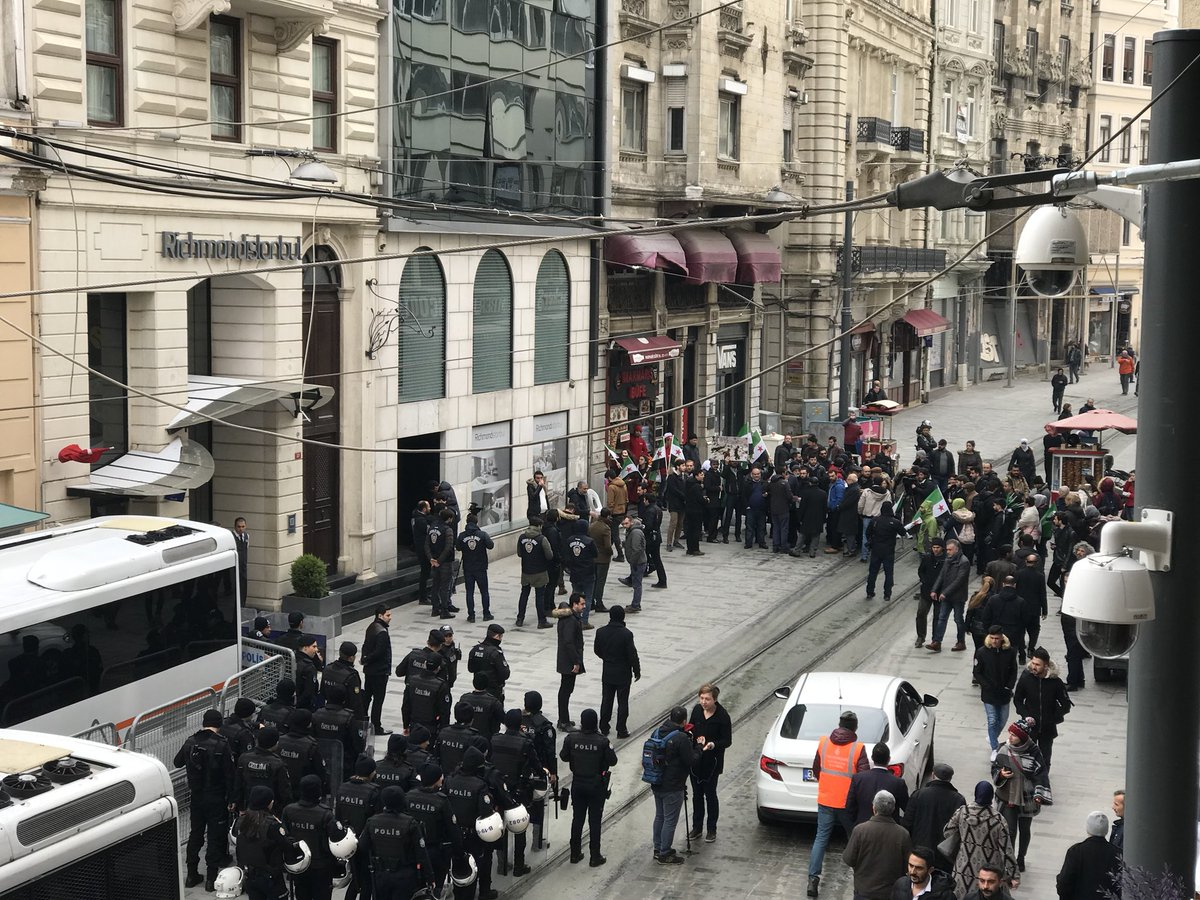 Yaklaşık 200 kişilik bir grup, İstanbul'daki Rusya Başkonsolosluk binası çevresinde Doğu Guta'daki sivil kayıplardan sorumlu tuttukları Suriye, Rusya ve İran yönetimlerini protesto etti. Yoğun güvenlik önlemleri alınan eylem, sorunsuz şekilde sona erdi.