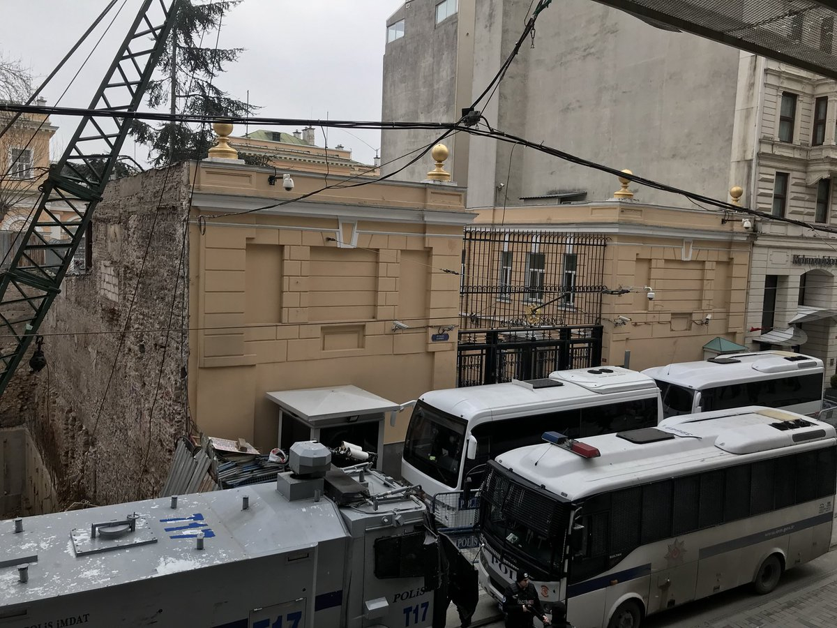 Protesto yoğun güvenlik önlemleri eşliğinde gerçekleşti. Protesto başlamadan bir saat önce Konsolosluk çevresindeki güvenlik azami seviyeye çıkarıldı; saat 11:30 itibarıyla ise binanın önüne çok sayıda zırhlı araç ve takviye polis konuşlandırıldı. Yoğun güvenlik önlemleri sebebiyle grup, Konsolosluk binasına 20 metre kadar yaklaşabildi.