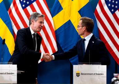 İsveç'in NATO ittifakına katılmasına ilişkin resmi giriş protokolünü basına gösteren Blinken, "Bu katılım belgesi ile birlikte İsveç'e, (NATO'nun kurucu anlaşması) Washington Anlaşması'nın bir tarafı ve NATO'nun 32. üyesi olarak hoş geldiniz demek istiyorum." ifadesini kullandı.