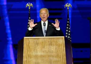 Biden, zafer konuşmasını Delaware eyaletinin Wilmington kentinde başkan yardımcılığına seçilen Kamala Harris ile birlikte yaptı.