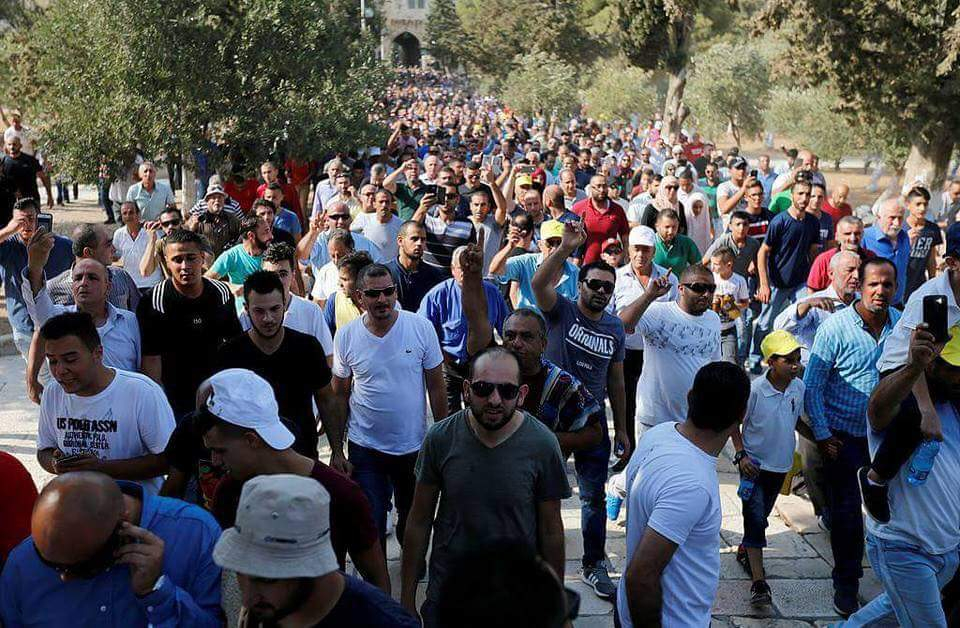 İki haftadır Aksa'nın kapılarında verdikleri özgürlük mücadelesinin neticesinde İsrail'e geri adım attıran Müslümanlar, Kudüs alimlerinin çağrısı üzerine ikindi namazı için Harem-i Şerif'e akın etti.