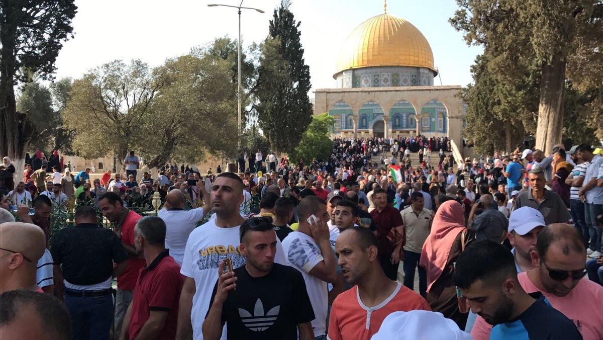 Filistinlilerin yoğun tepkisi üzerine Mescid-i Aksa'nın tüm kapıları açıldı, on binlerce kişi Harem-i Şerif'e girmeye başladı. İsrail polisi, Filistinlilere Hutta Kapısı önünde müdahale ediyor, yaralılar olduğu belirtiliyor.