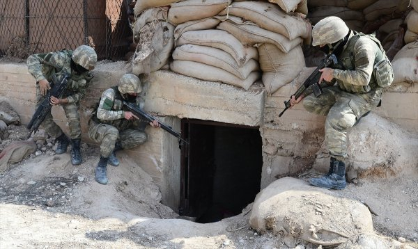 Özgür Suriye Ordusu'nun (ÖSO) desteğiyle yürütülen harekat kapsamında teröristlerden temizlenen dağda konuşlanan komandolar, çevre güvenliğini aldıkları alanları el yapımı patlayıcılardan arındırdıktan sonra bölgenin Afrin ile bağlantısını sağlayan tünellerde arama yapıyor.