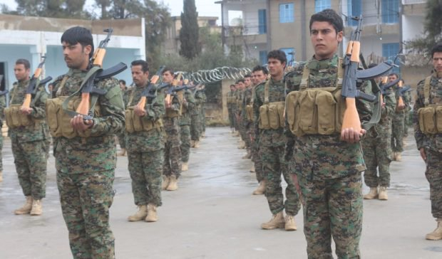 YPG'nin omurgasını oluşturduğu Demokratik Suriye Güçleri'nin (DSG) kurdurduğu Menbiç Askeri Konseyi Sözcüsü Şervan Derviş, ABD'nin öncülüğündeki 'uluslararası koalisyonun desteğiyle askeri eğitimden geçen' Konsey'in onlarca üyesiyle ilgili fotoğrafları Twitter'dan paylaştı.