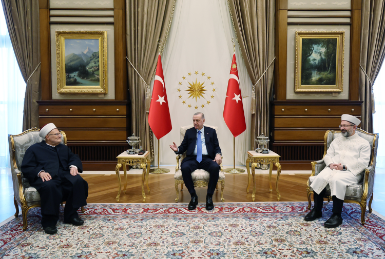Cumhurbaşkanı Recep Tayyip Erdoğan, Mescid-i Aksa İmam Hatibi Şeyh İkrime Sabri'yi, Cumhurbaşkanlığı Külliyesi'nde kabul etmişti.