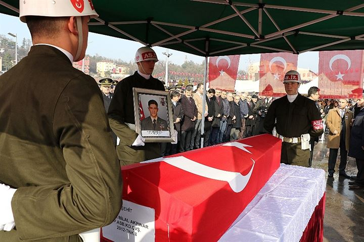 Zeytin Dalı Harekatı'nda YPG/PKK'lı teröristlerin saldırısı sonucunda şehit olan Piyade Astsubay Kıdemli Çavuş Ömer Bilal Akpınar, memleketi Karabük'te son yolculuğuna uğurlandı.