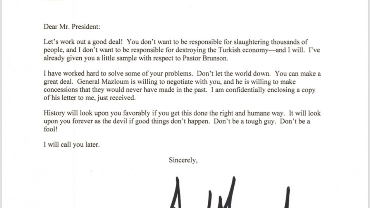 Trump'ın, Barış Pınarı Harekatı'ndan önce Cumhurbaşkanı Erdoğan'a yazdığı mektup ortaya çıktı.