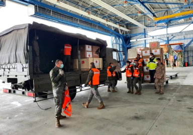 Cumhurbaşkanı Erdoğan'ın talimatıyla Milli Savunma Bakanlığı'na ait fabrika ve dikimevlerinde yerli olarak üretilen çeşitli tipte maske, tulum ve anti-bakteriyel sıvıdan oluşan sağlık malzemeleri TSK'ya ait uçakla İspanya ve İtalya'ya gitti.