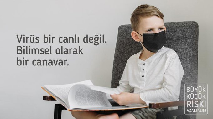 Diğer bir yandan Bakan Koca mesajında, "Virüs bir canlı değil. Bilimsel olarak bir canavar" yazılı bir görsel de yayınladı.