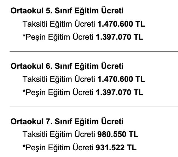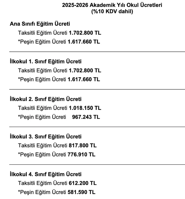 2025-2026 eğitim öğretim yılı için özel okullarca açıklanan kayıt ücretleri şaşkınlık yarattı. Türkiye'de son yıllarda önemli oranlarla artış gösteren özel okul ücretleri bu yıl da cep yakıcı seviyede. Hükümetin uyguladığı artış sınırlarına rağmen yıllık ücretler adeta servet değerine ulaşıyor.