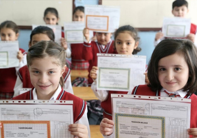 Yeni eğitim ve öğretim yılında bugün öğrenciler, 2 haftalık tatile girmek için bugün karnelerini aldı.