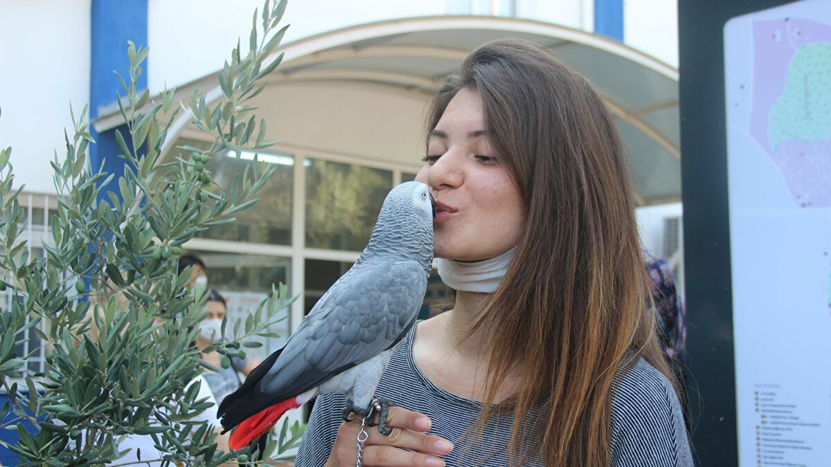 YKS'ye anne ve babasının 7 yıldır beslediği 'Paşa' adlı papağanıyla gelen Aleyna Üzer, tebessüm ettirdi. Üzer, 'Jako' cinsindeki can dostuna çok bağlı olduğunu belirtti. Sınava şans getirmesi için onunla beraber geldiğini dile getirdi.