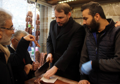Bakan Berat Albayrak'ın esnaf ziyareti eğlenceli görüntüler ortaya serdi. Pastırma kesip heyete ikram eden Albayrak, Kastamonu ile Kayseri arasındaki tartışmaya da dahil oldu.