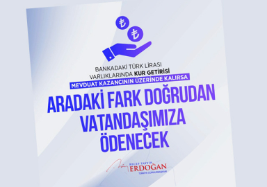 "İnsanlarımız, bankadaki Türk Lirası varlığının mevduat kazancı kur artışından yüksekse bu getiriyi elde edecek ama kur getirisi mevduat kazancının üstünde kalırsa aradaki fark doğrudan vatandaşımıza ödenecek. Üstelik bu kazanç stopaj vergisinden de muaf tutulacak."