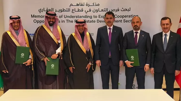 Cityscape Global Riyad 2025 Fuarı’nda düzenlenen imza törenine; Emlak Konut GYO Genel Müdürü Yasir Yılmaz, Suudi Arabistan Belediyeler ve Konut Bakanı Majid bin Abdullah Al-Huqail ve NHC CEO’su Mohammad Albuty katılım sağladı.