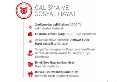 - 2 milyon dar gelirli aileye 1000 Türk Lirası nakit destek verilecek.