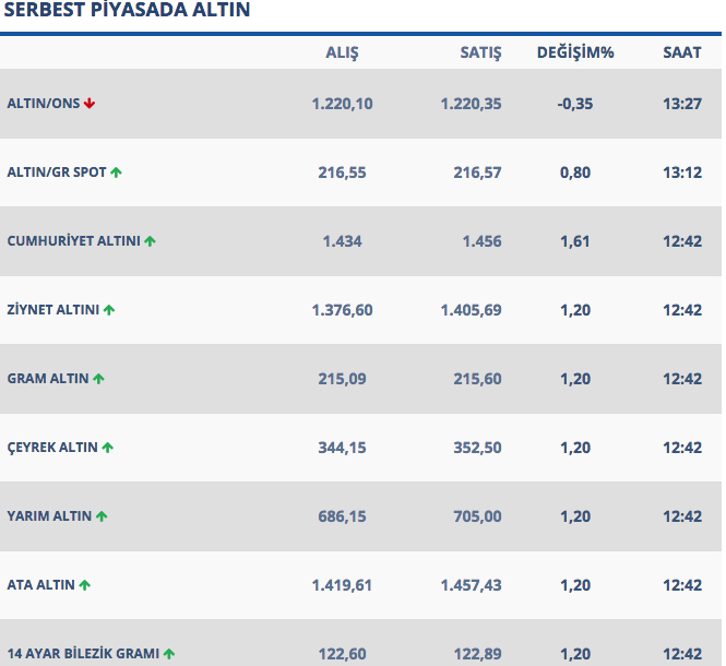SAAT 13:20'DA ALTIN, ÇEYREK ALTIN