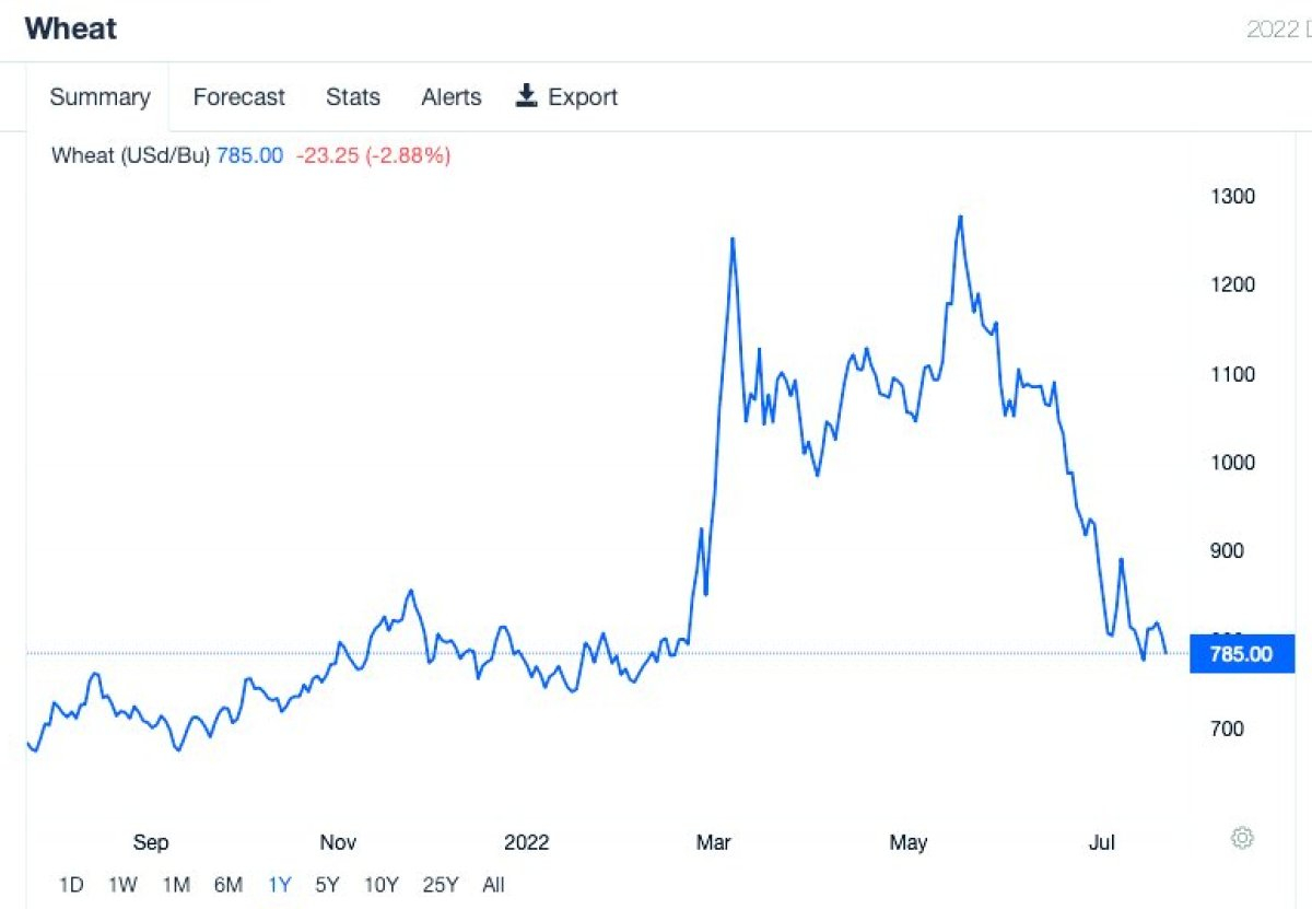 Rusya ve Ukrayna arasındaki savaş sebebiyle tahılda yaşanan küresel krizin İstanbul'da atılan imza ile çözülmesiyle birlikte, buğday fiyatlarında gerileme görüldü.