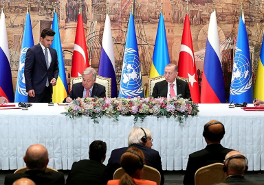 Tahıl ürünlerinin Ukrayna limanlarından sevkiyatına ilişkin anlaşma İstanbul'da imzalandı. Törende konuşan Cumhurbaşkanı Erdoğan anlaşma sayesinde fiyatların dizginleneceğini söyledi. BM Genel Sekreteri Guterres ise anlaşma için 'Erdoğan'ın ısrarlı yaklaşımı sayesinde oldu' dedi. İmzaların atılmasının ardından ABD ve Rusya'dan Erdoğan'a teşekkür mesajları geldi.