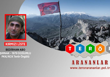 İÇİŞLERİ Bakanlığı, Aranan Teröristler Listesi'nde 'Kırmızı Kategori'de 4 milyon TL ödülle aranan Masiro kod adlı PKK'lı terörist Bedirhan Abo'nun Şırnak'ın Cudi Dağı bölgesinde düzenlenen operasyonla öldürüldüğünü açıkladı. Bakanlık'tan yapılan son dakika açıklamada şöyle denildi:
