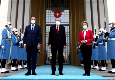 Cumhurbaşkanı Recep Tayyip Erdoğan, AB Konseyi Başkanı Charles Michel ve AB Komisyonu Başkanı Ursula von der Leyen'i kabul etti. Görüşmede Türkiye ile Avrupa Birliği'nin yeni dönemi ele alınacak.