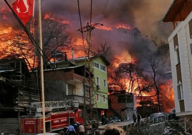 Kısa sürede büyüyen ve çevredeki çok sayıda eve sıçrayan yangına, Orman İşletme Şefliği ile Yusufeli Belediyesi itfaiye ekipleri müdahale ediyor.