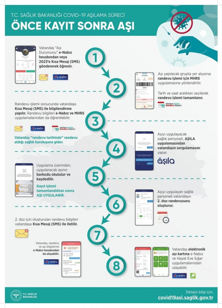 Aşı randevusu almak için öncelikle Merkezi Hekim Randevu Sistemi'ne (MHRS) giriş yapılması gerekiyor.