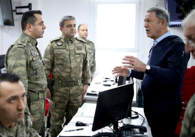 Harita üzerinde bölgedeki son duruma ilişkin detaylı bilgi alan Akar, mutabakatlar kapsamında İdlib'de görev yapan personelle telsizden konuştu.