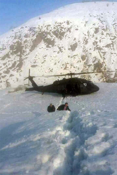 Tatvan'da da yoğun sis olduğu ve hava koşullarının elverişli olmadığı haberi üzerine helikopter, Muş'un Kale Mahallesi'ndeki boş bir araziye iniş yaptı.