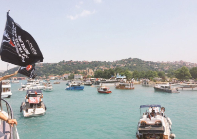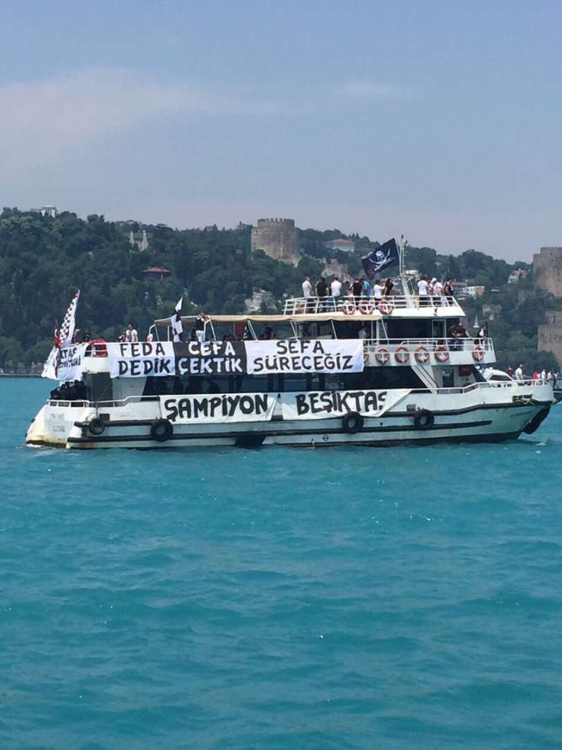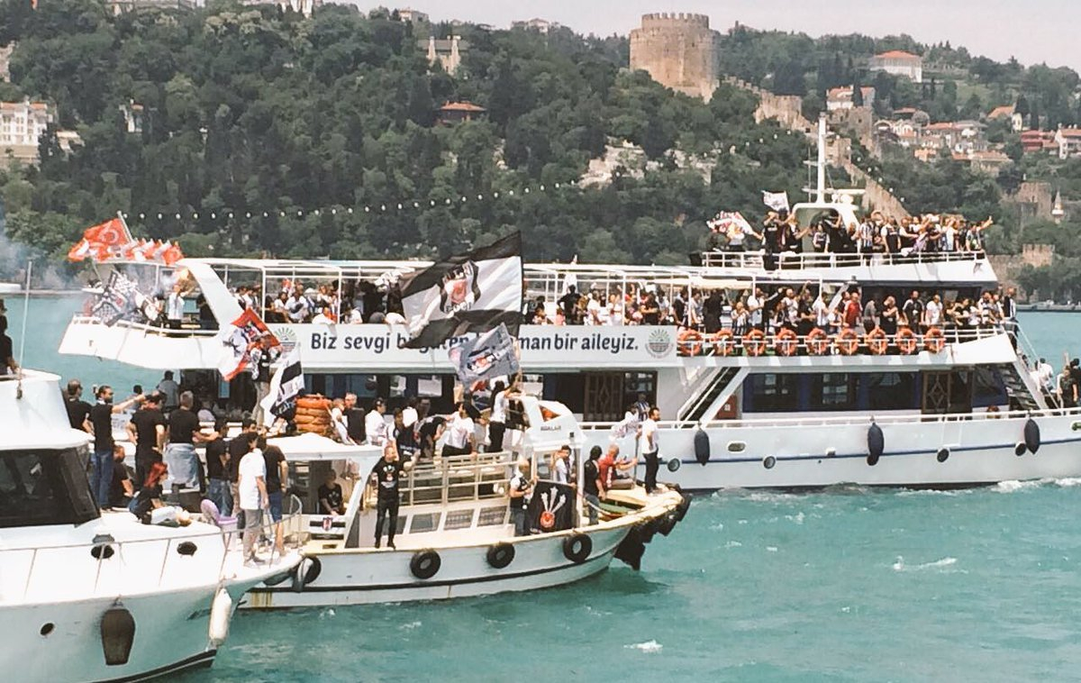 Geçtiğimiz hafta 15. şampiyonluğunu ilan eden Beşiktaş'ta taraftarlar denizden teknelerle stada giderek kutlamalara başladı.