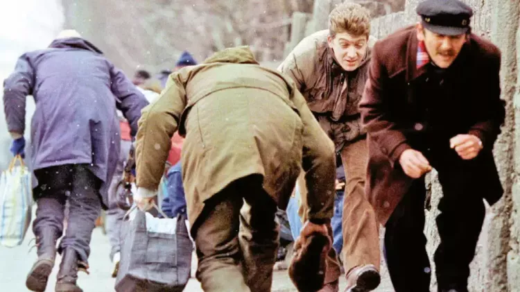 Bosnalı siviller, keskin nişancılardan korunmak için sokaklarda eğilerek yürüyordu.