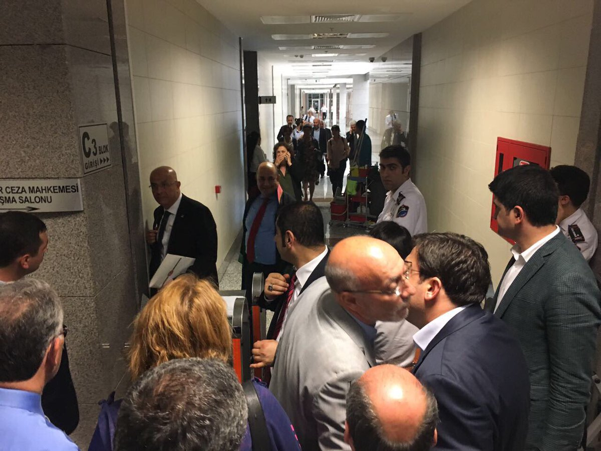 CHP Milletvekili Enis Berberoğlu bugünkü duruşmaya bir grup milletvekili ile hayli keyifli bir havada gelmişti.