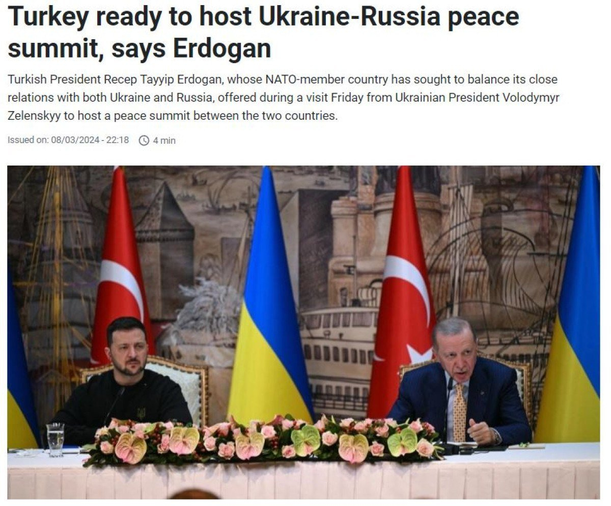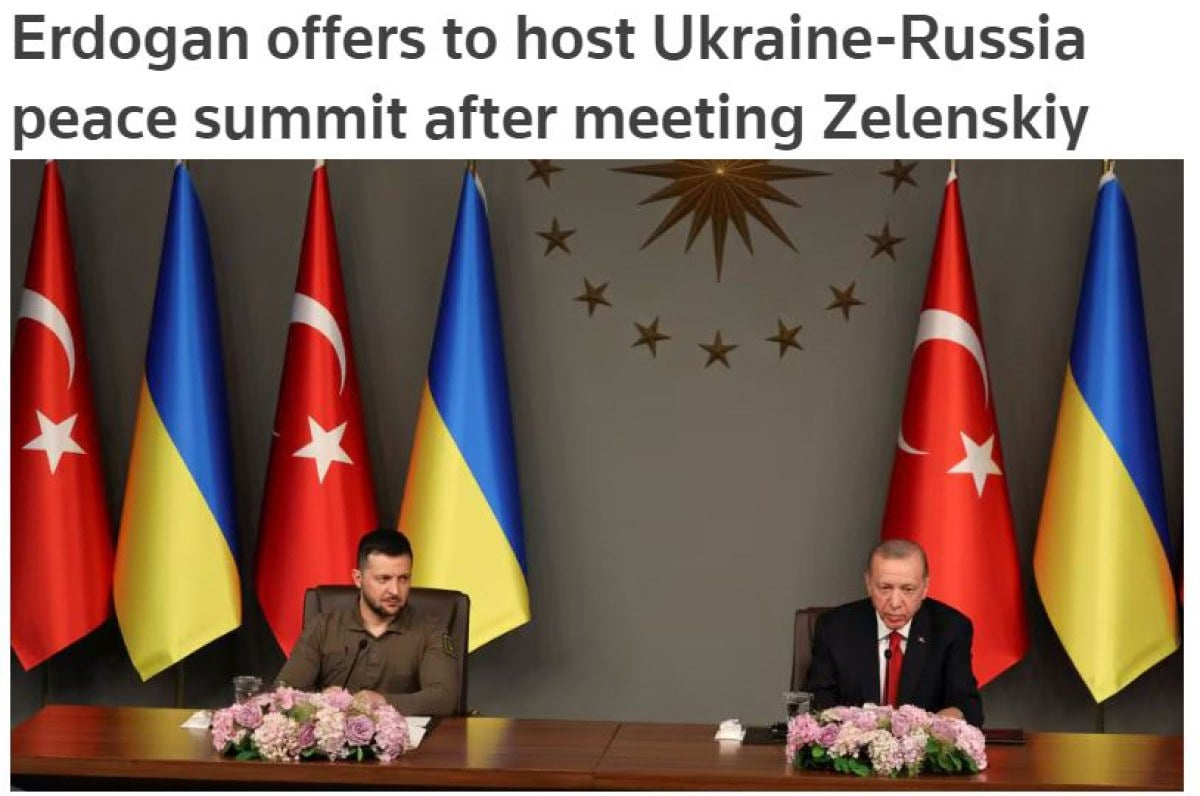 İngiltere merkezli Reuters, "Erdoğan, Zelensky ile görüştükten sonra Ukrayna-Rusya barış zirvesine ev sahipliği yapmayı teklif etti." diye yazdı.