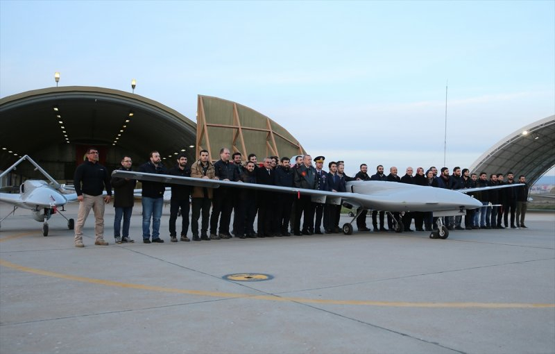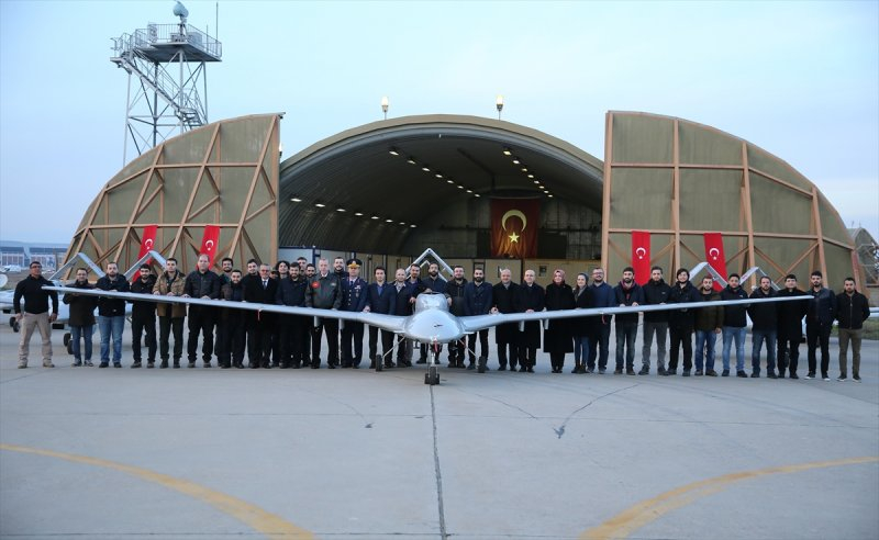 Cumhurbaşkanı Erdoğan ve beraberindekiler, SİHA önünde hatıra fotoğrafı çektirdi.