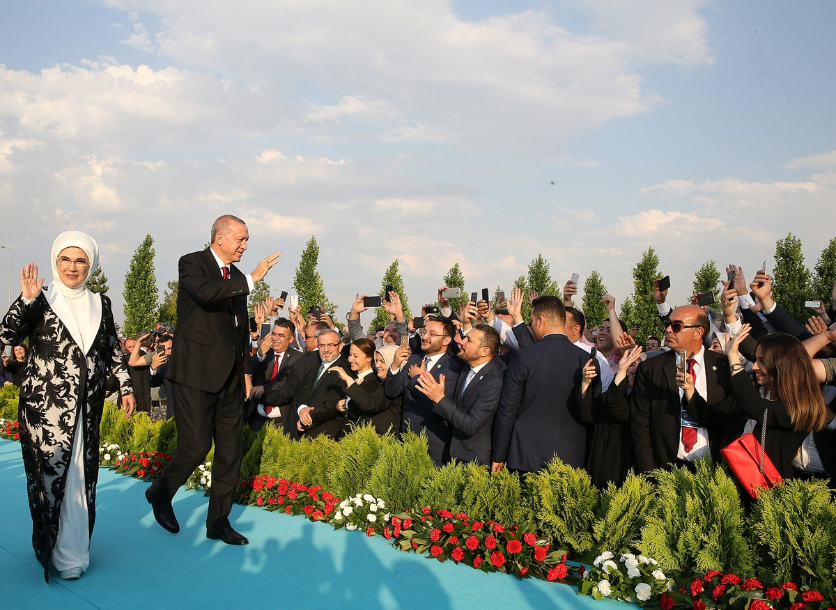 Erdoğan, "Bu defa Cumhurbaşkanlığı makamına değişen yönetim sisteminin gereği olarak yürütme organının tüm yetkileriyle geldik, Allah bizi milletimize mahcup etmesin." ifadelerini kullandı.