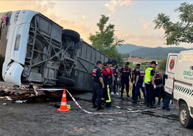 Denizli'nin Honaz ilçesinde kum yüklü kamyonun karşı şeride geçerek otobüse çarpması sonucu 6 kişi yaşamını yitirdi, 42 kişi yaralandı.