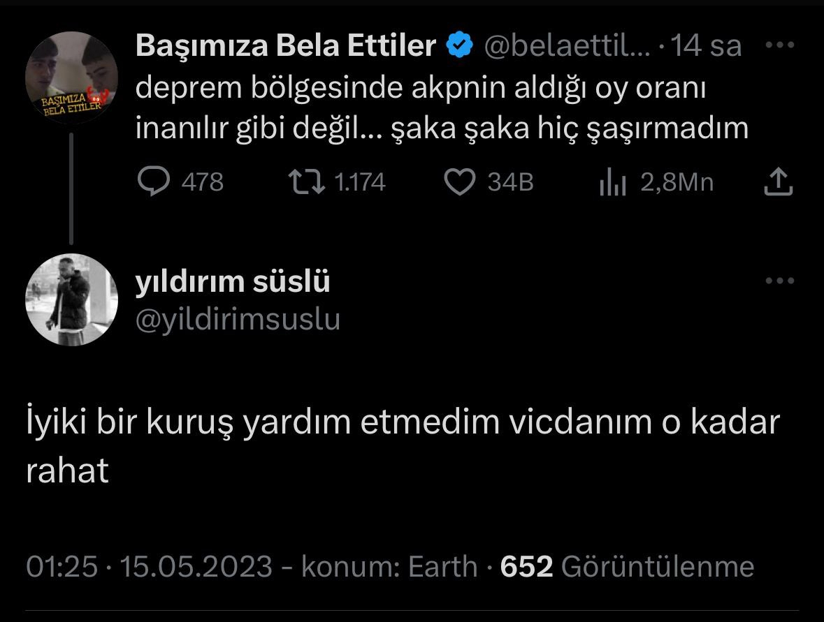 Cumhurbaşkanı Erdoğan ve AK Parti yarışı önde götürürken, deprem bölgeleriyle ilgili sosyal medyada çok çirkin paylaşımlar yapılmaya başlandı.