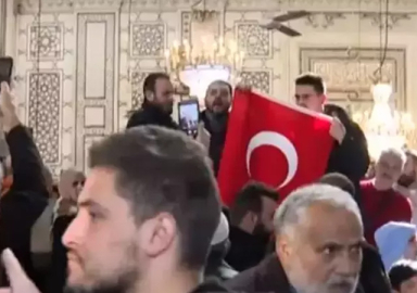 Emevi Camii’nde Cuma namazında Türk bayrağı açıldı