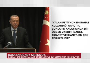 Türkiye Cumhuriyeti Devleti Başkanı Recep Tayyip Erdoğan BRICS Zirvesi kapsamında bulunduğu Güney Afrika Cumhuriyeti'nde Müslüman kanaat önderleri ile bir araya geldiği programda konuşma yaptı.