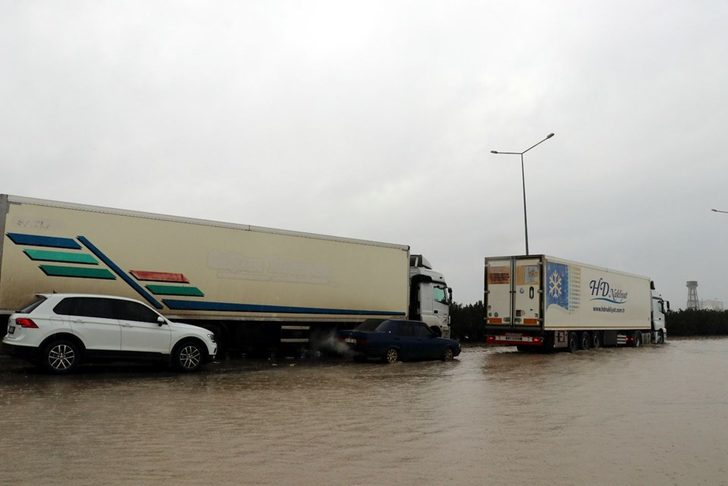 Ekipler biriken suyun tahliyesi için çalışırken, ilerleyen saatlerde yolun yeniden trafiğe açılması bekleniyor.
