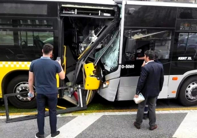 İstanbul'da iki metrobüs kafa kafaya çarpıştı