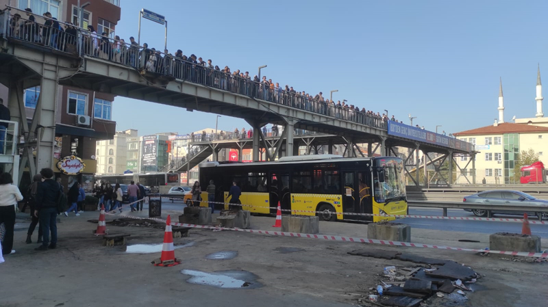 Küçükçekmece Beşyol Metrobüs Durağı'ndaki üst geçite yönelik yenileme çalışmaları nedeniyle vatandaşlar metrobüse ulaşmakta zorluk çekti. Aracın da geç gelmesi trafiği tamamen yoğunlaştırdı.