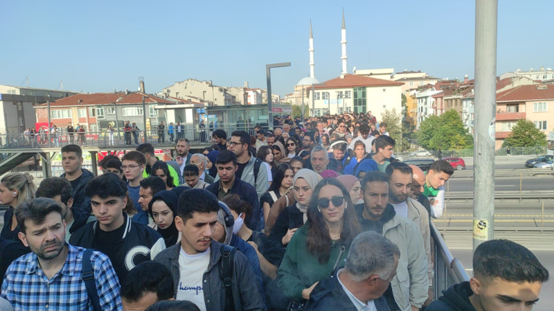 Metrobüsten inen ve turnike bölgesinden metroya ve otobüse ulaşmaya çalışan kişiler de kalabalıktan dolayı tek sıra halinde ilerlemeye çalıştı.